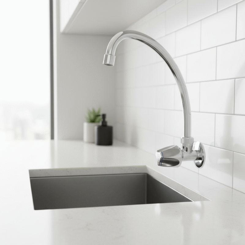Llave para lavatorio modelo belize Pico alto de alto rendimiento fabricada en bronce cromado, diseñada para optimizar el consumo de agua en espacios domésticos. Cuenta con perilla cromado, todos en bronce con acabado cromado de alta resistencia. Una solución durable, funcional y eficiente para urinarios en proyectos institucionales y comerciales.