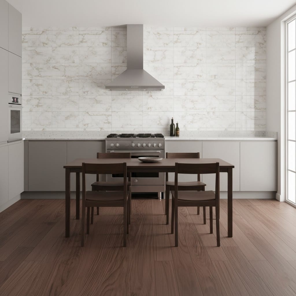 Mayólica de formato 30×60 cm con vetas cálidas marrones claros sobre fondo blanco. Acabado brillante con superficie brillante tipo ladrillo, fusionando elegancia con tacto táctil y profundidad , ideal para crear espacios luminosos y modernos. Perfecto para paredes de baños, lavanderías o cualquier ambiente que busque un toque sutil, elegante y fácil de combinar. La instalación se realiza mediante sistema de pegado tradicional, recomendándole el uso de pegamento específico para cerámicos.