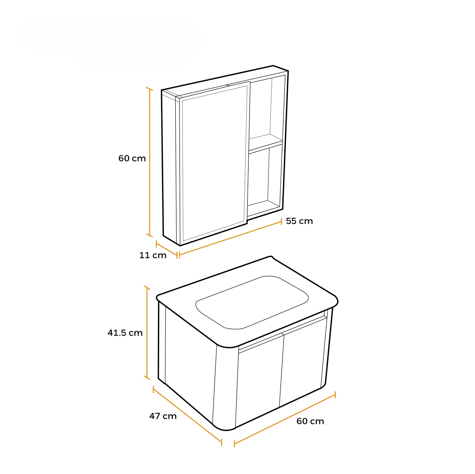 MUEBLE DE BAÑO GREY 60 X 41.5 47 CM + ESPEJO LED