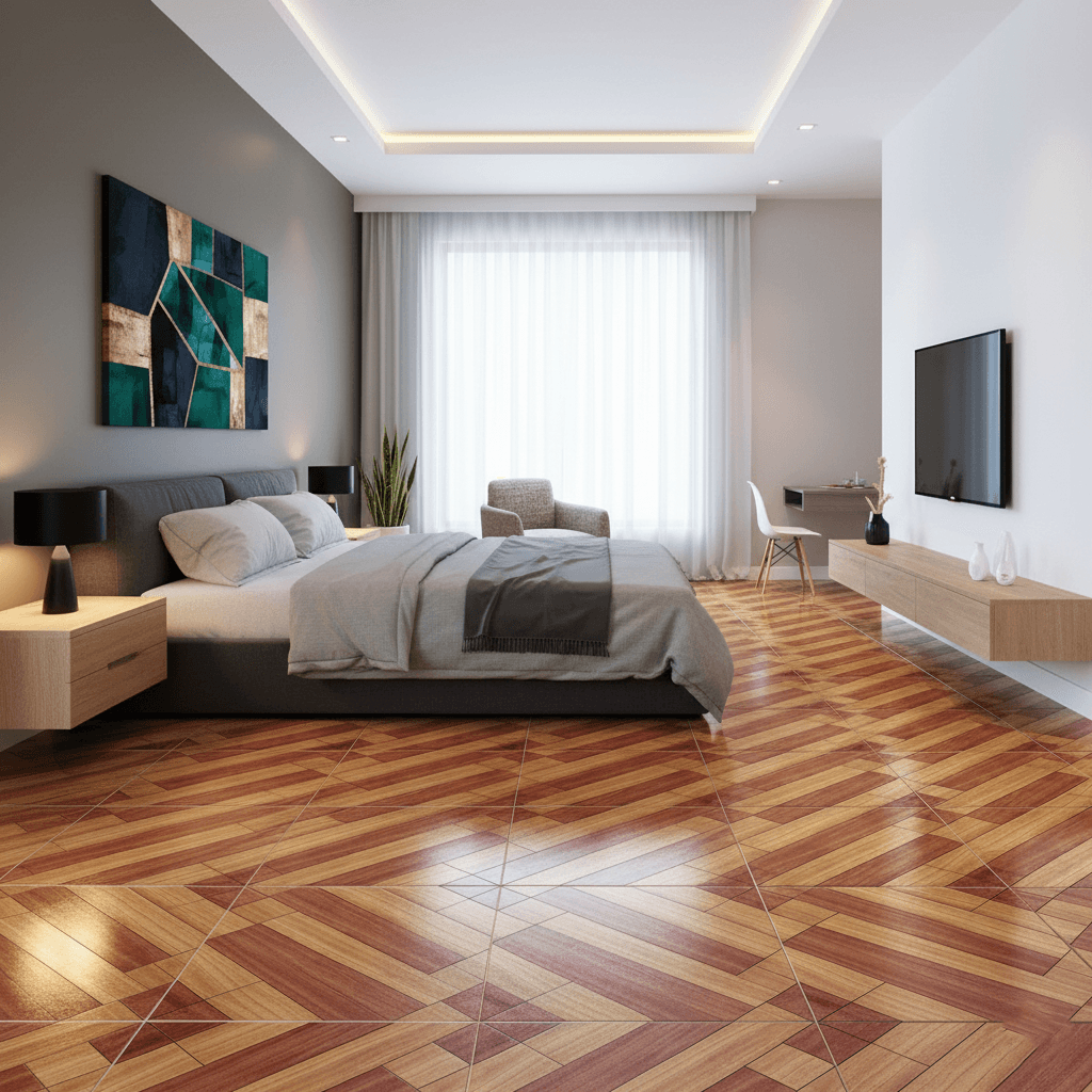 Piso Foresta Laurel 60x60 cm – diseño cálido tipo parquet en tonos madera, ideal para salas y comedores. Disponible en marketceramico.com