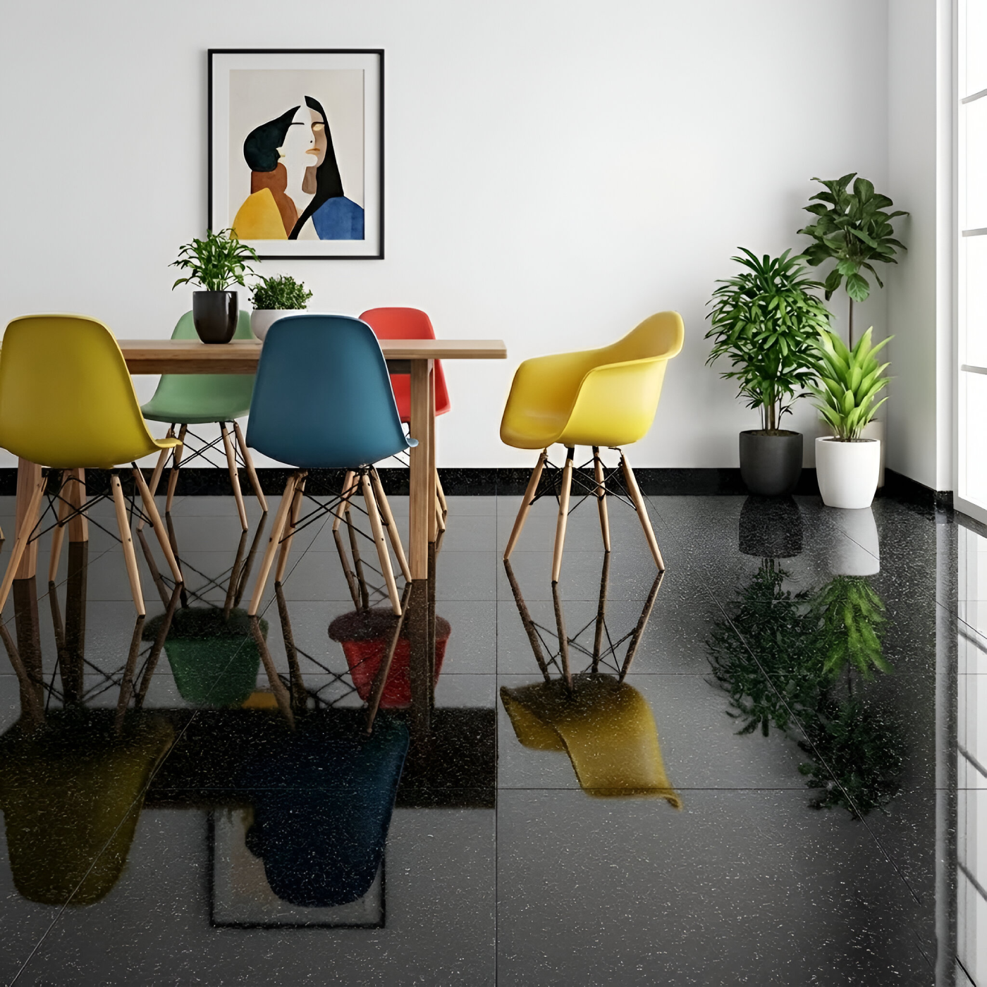 Porcelanato vitrificado Granillo 60×60 cm interpreta la fuerza del mármol granítico desde una estética moderna y refinada. Su fondo negro profundo, salpicado por delicadas partículas en tonos grises, construye una superficie elegante y dinámica que aporta carácter y profundidad visual sin saturar el espacio.