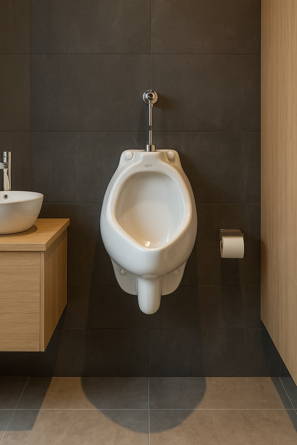 Urinario compacto y funcional de loza vitrificada. Ahorra espacio y agua. ¡Combina estilo, confort y ahorro en una sola pieza!
